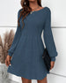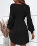 SPECIFICATIONS Style: Casual, Chic, Business Material: 41% Acrylic, 30% Chinlon, 29% Polyester Dress Type: A-Line Dress Length: Knee Length Neckline: Round Neck Pattern Type: Solid Color Sleeve Type: Lantern Sleeve Sleeve Length: Long Sleeve Fit Type: Regular Season: Spring, Fall, Winter Occasion: Daily Package Includes: 1 x Dress SIZE TA...