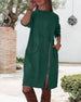 SPECIFICATIONS Style: Casual Material: Cotton Blends Dress Type: Shift dress Dress Length: Knee Length Neckline: Round Neck Pattern Type: Solid Color Sleeve Type: Dropped shoulder Sleeve Length: Long Sleeve Fit Type: Regular Season: Spring, Fall Occasion: Daily Package Includes: 1 x Dress SIZE TABLE Size Bust Length CM INCH CM INCH ...
