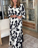 SPECIFICATIONS Style: Elegant Material: Cotton Blends Dress Type: A-Line Dress Length: Midi Neckline: Round Neck Pattern Type: Print Sleeve Type: Lantern Sleeve Sleeve Length: Nine Points Sleeve Details: Shirred Fit Type: Regular Season: Spring, Fall, Winter Occasion: Daily Package Includes: 1 x Dress SIZE TABLE Size Bust Lengt...