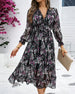 SPECIFICATIONS Style: Elegant Material: Cotton Blends Dress Type: A-Line Dress Length: Midi Neckline: V neck_V Pattern Type: Floral Sleeve Type: Lantern Sleeve Sleeve Length: Nine Points Sleeve Fit Type: Regular Season: Spring, Summer, Fall Occasion: Daily Package Includes: 1 x Dress SIZE TABLE Size Bust Length CM INCH CM INC...