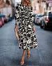 SPECIFICATIONS Style: Casual Material: Polyester, Spandex Dress Type: A-Line Dress Length: Knee Length Neckline: Lapel Pattern Type: Print Sleeve Type: Lantern Sleeve Sleeve Length: Long Sleeve Fit Type: Regular Season: Spring, Fall Occasion: Daily Package Includes: 1 x Dress SIZE TABLE Size Bust Length CM INCH CM INCH S 95 37.40 1...