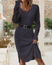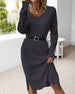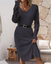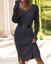 SPECIFICATIONS Style: Casual, Elegant Material: Cotton Blends Dress Type: A-Line Dress Length: Knee Length Neckline: V neck_V Pattern Type: Solid Color Sleeve Type: Regular sleeve Sleeve Length: Long Sleeve Details: Slit Fit Type: Regular Season: Spring, Fall, Winter Occasion: Daily, Work Package Includes: 1 x Dress SIZE TABLE Size Bust...