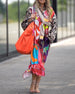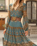 V-neck printed casual long dress