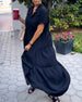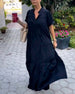SPECIFICATIONS Style: Casual Material: Cotton Blends Dress Type: A-Line Dress Length: Maxi Neckline: V neck_V Pattern Type: Solid Color Sleeve Type: Regular sleeve Sleeve Length: Short Sleeve Details: Buttons Fit Type: Regular Season: Spring, Summer, Fall Occasion: Daily Package Includes: 1 x Dress SIZE TABLE Size Bust Length CM INCH ...