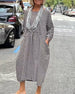 SPECIFICATIONS Style: Casual Material: Cotton Blends Dress Type: Shift dress Dress Length: Maxi Neckline: Lapel Pattern Type: Print Sleeve Type: Regular sleeve Sleeve Length: Long Sleeve Details: Pocket Fit Type: Regular Season: Spring, Fall, Winter Occasion: Daily Package Includes: 1 x Dress SIZE TABLE Size Bust Length CM IN...