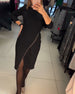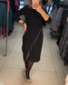 Round Neck Slant Split Dress