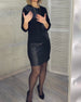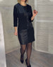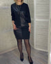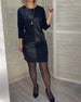 PU leather patchwork round neck dress