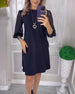 SPECIFICATIONS Style: Elegant Material: Cotton Blends Dress Type: Shift dress Dress Length: Knee Length Neckline: Round Neck Pattern Type: Solid Color Sleeve Type: Regular sleeve Sleeve Length: Nine Points Sleeve Fit Type: Regular Season: Spring, Fall, Winter Occasion: Daily, Party Package Includes: 1 x Dress SIZE TABLE Size Bust Length...