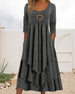 SPECIFICATIONS Style: Casual Material: Cotton and linen Dress Type: A-Line Dress Length: Midi Neckline: Round Neck Pattern Type: Solid Color Sleeve Type: Lantern Sleeve Sleeve Length: 3/4 Sleeve Details: Patchwork Fit Type: Loose Season: Spring, Summer, Fall Occasion: Daily Package Includes: 1 x Dress SIZE TABLE (cm) Size Bus...