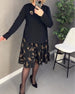 SPECIFICATIONS Style: Elegant Material: Cotton Blends Dress Type: Shift dress Dress Length: Knee Length Neckline: Round Neck Pattern Type: Solid Color Sleeve Type: Ruffle Sleeve Sleeve Length: Long Sleeve Details: Patchwork, Ruffle Fit Type: Regular Season: Spring, Fall, Winter Occasion: Daily Package Includes: 1 x Dress SIZE TABLE ...