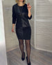 SPECIFICATIONS Style: Elegant Material: Cotton Blends, PU Leather Dress Type: Shift dress Dress Length: Above-knee Neckline: Round Neck Pattern Type: Solid Color Sleeve Type: Regular sleeve Sleeve Length: Long Sleeve Details: Patchwork Fit Type: Regular Season: Spring, Fall, Winter Occasion: Daily Package Includes: 1 x Dress SIZE TABLE ...