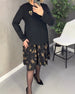 SPECIFICATIONS Style: Elegant Material: 100% Polyester Dress Type: Shift dress Dress Length: Knee Length Neckline: Round Neck Pattern Type: Color Block Sleeve Type: Regular sleeve Sleeve Length: Long Sleeve Details: Shirred Fit Type: Regular Season: Spring, Fall, Winter Occasion: Daily, Work Package Includes: 1 x Dress SIZE TABLE ...