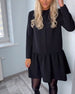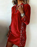 SPECIFICATIONS Style: Casual Material: Cotton Blends Dress Type: Shift dress Dress Length: Knee Length Neckline: Draped Collar Pattern Type: Sequin Sleeve Type: Regular sleeve Sleeve Length: Long Sleeve Details: Patchwork Fit Type: Regular Season: Spring,Fall,Winter Occasion: Daily Package Includes: 1 x Dress SIZE TABLE Size Bust Len...