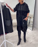 Slouchy Collar Ruffled Paneled Velvet Dress