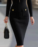 SPECIFICATIONS Style: Casual Material: Acrylic,Spandex,Polyester Dress Type: Shift dress Dress Length: Knee Length Neckline: High Neck Pattern Type: Solid Color Sleeve Type: Regular sleeve Sleeve Length: Long Sleeve Details: Buttons Fit Type: Regular Season: Fall,Winter Occasion: Daily Package Includes: 1 x Dress SIZE TABLE Size ...