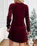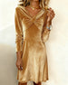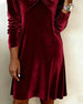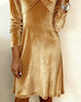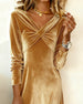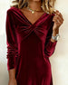 Twist-Knot V-Neck Long-Sleeved Velvet Dress