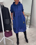 SPECIFICATIONS Style: Casual Material: Cotton Blends Dress Type: Shirt Dress Length: Above-knee Neckline: Shirt Collar Pattern Type: Solid Color Sleeve Type: Regular sleeve Sleeve Length: Half Sleeve Details: Pocket,Buttons Fit Type: Regular Season: Fall,Winter Occasion: Daily,Work Package Includes: 1 x Dress SIZE TABLE Size Bust Len...