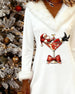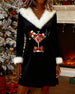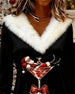 V-Neck Loose-Fitting Christmas Wine Glass Print Top