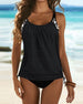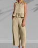 Ruffled sleeveless solid color two-piece suit