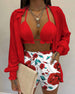 Balloon sleeve shirt bikini three piece set