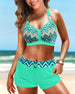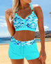 SPECIFICATIONS Style: Vacation Material: Chinlon Occasion: Vacation Neckline: Halter Pattern Type: Print Sleeve Length: Sleeveless Top Type: Bikini Bra Type: Wireless Bra Bottom Type: Shorts Fit Type: Regular Details: Drawstring Package Includes: 1 x Bikini SIZE TABLE Size Bust Under Bust Waist Hips cm inch cm inch cm in...
