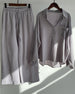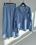 SPECIFICATIONS Top Type: Blouses Style: Casual Material: Cotton Blends Occasion: Daily Neckline: Shirt Collar Pattern Type: Solid Color Sleeve Type: Regular sleeve Sleeve Length: Long Sleeve Fit Type: Loose Season: Spring, Summer, Fall Details: Pocket, Buttons, Drawstring Package Includes: 1 x Blouse,1 x Pants SIZE TABLE Blous...