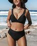 SPECIFICATIONS Style: Vacation Material: 82% Chinlon, 18% Spandex Occasion: Vacation Neckline: V neck_V Pattern Type: Solid Color Sleeve Length: Sleeveless Top Type: Bikini Bra Type: Wireless Bra Bottom Type: High Waist Fit Type: Regular Season: Summer Package Includes: 1 x Bikini SIZE TABLE (cm) Size Bust Under Bust Wais...