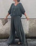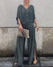 SPECIFICATIONS Style: Casual Top Type: Blouses Material: Chiffon,Polyester Pattern Type: Solid Color Neckline: V neck_V Sleeve Type: Regular sleeve Sleeve Length: Half Sleeve Pants Type: Straight Leg Pants Length: Long Waist Type: High Waist Fit Type: Regular Season: Spring, Summer, Fall Occasion: Daily Package Includes: 1 x Blouse, 1 x Pant...