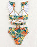 SPECIFICATIONS Style: Vacation Material: 15% Spandex, 85% Polyester Occasion: Vacation Neckline: V neck_V Pattern Type: Leaves Sleeve Length: Sleeveless Top Type: Bikini Bra Type: Wireless Bra Bottom Type: High Cut Fit Type: Skinny Season: Summer Details: Backless, Ruffle Package Includes: 1 x Bikini SIZE TABLE Size Length ...