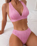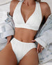 SPECIFICATIONS Style: Vacation Material: 82% Chinlon, 18% Spandex Occasion: Vacation Neckline: V neck_V Pattern Type: Solid Color Sleeve Length: Sleeveless Top Type: Bikini Bra Type: Wireless Bra Bottom Type: High Cut Fit Type: Skinny Season: Summer Details: Backless, Lace Up Package Includes: 1 x Bikini SIZE TABLE Size Wai...