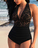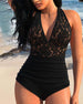 SPECIFICATIONS Style: Vacation, Sexy Material: 82% Chinlon, 18% Spandex Occasion: Vacation Neckline: Halter Pattern Type: Solid Color Sleeve Length: Sleeveless Top Type: One Piece Bra Type: Push Up Fit Type: Regular Season: Summer Details: Lace Package Includes: 1 x One Piece SIZE TABLE Size Bust Waist Hip Under bust CM INCH CM INCH C...