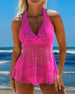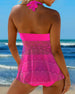 SPECIFICATIONS Style: Casual, Vacation Material: 82% Chinlon, 18% Spandex Occasion: Vacation Neckline: Halter Pattern Type: Print Sleeve Length: Sleeveless Top Type: Tankini Bra Type: Push Up Bottom Type: High Cut Fit Type: Regular Season: Summer Details: Lace Package Includes: 1 x Tankini SIZE TABLE Size Bust Waist Hip Under bust CM ...
