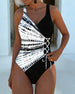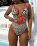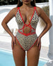 Color-Blocked Leopard Print One-Piece Swimsuit
