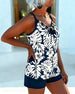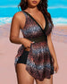 Deep V-Neck Leopard Print Two-Piece Swimdress