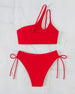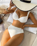 SPECIFICATIONS Style: Vacation Material: 82% Chinlon,18% Spandex Occasion: Vacation Neckline: Spaghetti Straps Pattern Type: Solid Color Sleeve Length: Sleeveless Top Type: Bikini Bra Type: Wireless Bra Bottom Type: High Waist Fit Type: Skinny Details: Shirred Package Includes: 1 x Bikini SIZE TABLE Size Bust Waist Hip Under bust CM INCH C...