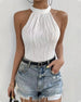 SPECIFICATIONS Style: Casual Top Type: Cami Top Category: Sets Material: Cotton Blends Pattern Type: Solid Color Sleeve Length: Sleeveless Pants Type: Conventional Pants Length: Short Waist Type: Mid Waist Fit Type: Regular Season: Spring,Summer,Fall,Winter Details: Patchwork Occasion: Daily Package Includes: 1 x Cami Top, 1 x Shorts SIZE TABL...