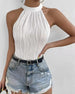 SPECIFICATIONS Style: Vacation Material: 82% Chinlon,18% Spandex Occasion: Vacation Neckline: Halter Pattern Type: Solid Color Sleeve Length: Sleeveless Top Type: One Piece Bra Type: Wireless Bra Fit Type: Skinny Details: Shirred Package Includes: 1 x One Piece SIZE TABLE Size Bust Waist Hip Under bust CM INCH CM INCH CM INCH CM INCH S 8...