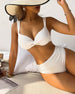 SPECIFICATIONS Style: Vacation Occasion: Vacation Neckline: Spaghetti Straps Pattern Type: Color Block Sleeve Length: Sleeveless Top Type: Bikini Bra Type: Triangle Bottom Type: Natural Fit Type: Skinny Season: Spring,Summer,Fall,Winter Package Includes: 1 x Bikini,1×Swimsuit Cover Skirt SIZE TABLE Size Bust Waist Hip Under bust CM INCH CM...