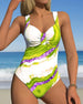 Sexy Deep V Split Print Bikini