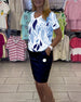 SPECIFICATIONS Style: Casual Top Type: Tops Category: Sets Material: Cotton Blends Pattern Type: Color Block,Print Neckline: Lapel Sleeve Type: Regular sleeve Sleeve Length: Half Sleeve Fit Type: Regular Season: Spring,Summer Details: Pocket,Drawstring Occasion: Daily Package Includes: 1 x Top, 1 x Skirt SIZE TABLE Size Bust Top Length Wa...