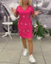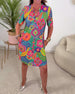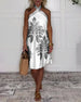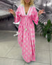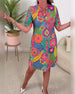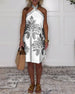 Elegant Three-Quarter Sleeve Printed Waist Dress