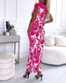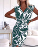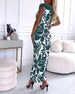 Icon1 Leaf print slit pleated sleeveless slim fit dress