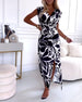 Elegant Three-Quarter Sleeve Printed Waist Dress