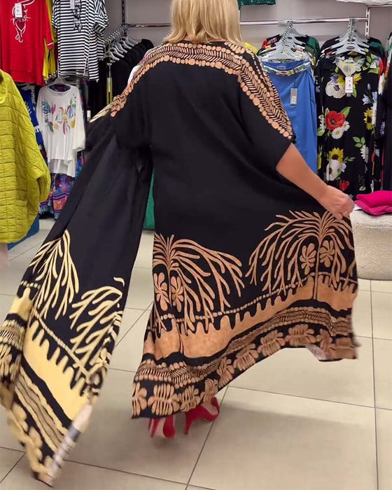 Elegant Three-Quarter Sleeve Printed Waist Dress