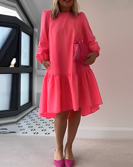 {"id":9270171042093,"title":"Solid color round neck long sleeve dress","handle":"solid-color-round-neck-long-sleeve-dress","description":"\u003ch4 data-mce-fragment=\"1\"\u003e\n\u003cspan style=\"color: #000000;\" data-mce-fragment=\"1\"\u003eSPECIFICATIONS\u003c\/span\u003e\u003cbr data-mce-fragment=\"1\"\u003e\n\u003c\/h4\u003e\n\u003cul\u003e\n\u003cli data-mce-fragment=\"1\"\u003eStyle: Casual\u003c\/li\u003e\n\u003cli data-mce-fragment=\"1\"\u003eMaterial: Cotton Blends\u003c\/li\u003e\n\u003cli data-mce-fragment=\"1\"\u003eDress Type: Shift dress\u003c\/li\u003e\n\u003cli data-mce-fragment=\"1\"\u003eDress Length: Knee Length\u003c\/li\u003e\n\u003cli data-mce-fragment=\"1\"\u003eNeckline: Round Neck\u003c\/li\u003e\n\u003cli data-mce-fragment=\"1\"\u003ePattern Type: Solid Color\u003c\/li\u003e\n\u003cli data-mce-fragment=\"1\"\u003eSleeve Type: Lantern Sleeve\u003c\/li\u003e\n\u003cli data-mce-fragment=\"1\"\u003eSleeve Length: Long Sleeve\u003c\/li\u003e\n\u003cli data-mce-fragment=\"1\"\u003eDetails: Pocket, Ruffle\u003c\/li\u003e\n\u003cli data-mce-fragment=\"1\"\u003eFit Type: Regular\u003c\/li\u003e\n\u003cli data-mce-fragment=\"1\"\u003eSeason: Spring, Summer, Fall\u003c\/li\u003e\n\u003cli data-mce-fragment=\"1\"\u003eOccasion: Daily\u003c\/li\u003e\n\u003cli data-mce-fragment=\"1\"\u003ePackage Includes: 1 x Dress\u003c\/li\u003e\n\u003c\/ul\u003e\n\u003cp\u003e\u003cbr\u003e\u003c\/p\u003e\n\u003ch4 data-mce-fragment=\"1\"\u003e\u003cspan style=\"color: #000000;\" data-mce-fragment=\"1\"\u003eSIZE TABLE\u003c\/span\u003e\u003c\/h4\u003e\n\u003cstyle type=\"text\/css\"\u003e\u003c!--\ntd {border: 1px solid #cccccc;}br {mso-data-placement:same-cell;}\n--\u003e\u003c\/style\u003e\n\u003ctable border=\"1\" dir=\"ltr\" cellpadding=\"0\" cellspacing=\"0\" xmlns=\"http:\/\/www.w3.org\/1999\/xhtml\"\u003e\n\u003ccolgroup\u003e\n\u003ccol width=\"100\"\u003e\n\u003ccol width=\"100\"\u003e\n\u003ccol width=\"100\"\u003e\n\u003ccol width=\"100\"\u003e\n\u003ccol width=\"100\"\u003e\n\u003c\/colgroup\u003e\n\u003ctbody\u003e\n\u003ctr\u003e\n\u003ctd data-sheets-value='{\"1\":2,\"2\":\"Size\"}' colspan=\"1\" rowspan=\"2\" style=\"text-align: center;\"\u003e\n\u003cdiv\u003e\u003cstrong\u003eSize\u003c\/strong\u003e\u003c\/div\u003e\n\u003c\/td\u003e\n\u003ctd data-sheets-value='{\"1\":2,\"2\":\"Bust\"}' colspan=\"2\" rowspan=\"1\" style=\"text-align: center;\"\u003e\u003cstrong\u003eBust\u003c\/strong\u003e\u003c\/td\u003e\n\u003ctd data-sheets-value='{\"1\":2,\"2\":\"Length\"}' colspan=\"2\" rowspan=\"1\" style=\"text-align: center;\"\u003e\u003cstrong\u003eLength\u003c\/strong\u003e\u003c\/td\u003e\n\u003c\/tr\u003e\n\u003ctr style=\"height: 19px;\"\u003e\n\u003ctd data-sheets-value='{\"1\":2,\"2\":\"CM\"}' style=\"text-align: center; height: 19px;\"\u003e\u003cstrong\u003eCM\u003c\/strong\u003e\u003c\/td\u003e\n\u003ctd data-sheets-value='{\"1\":2,\"2\":\"INCH\"}' style=\"text-align: center; height: 19px;\"\u003e\u003cstrong\u003eINCH\u003c\/strong\u003e\u003c\/td\u003e\n\u003ctd data-sheets-value='{\"1\":2,\"2\":\"CM\"}' style=\"text-align: center; height: 19px;\"\u003e\u003cstrong\u003eCM\u003c\/strong\u003e\u003c\/td\u003e\n\u003ctd data-sheets-value='{\"1\":2,\"2\":\"INCH\"}' style=\"text-align: center; height: 19px;\"\u003e\u003cstrong\u003eINCH\u003c\/strong\u003e\u003c\/td\u003e\n\u003c\/tr\u003e\n\u003ctr style=\"height: 19px;\"\u003e\n\u003ctd data-sheets-value='{\"1\":2,\"2\":\"S\"}' style=\"text-align: center; height: 19px;\"\u003eS\u003c\/td\u003e\n\u003ctd data-sheets-value='{\"1\":3,\"3\":98}' style=\"text-align: center; height: 19px;\"\u003e98\u003c\/td\u003e\n\u003ctd data-sheets-formula=\"=R[0]C[-1]\/2.54\" data-sheets-numberformat='{\"1\":2,\"2\":\"0.00\",\"3\":1}' data-sheets-value='{\"1\":3,\"3\":38.58267716535433}' style=\"text-align: center; height: 19px;\"\u003e38.58\u003c\/td\u003e\n\u003ctd data-sheets-value='{\"1\":3,\"3\":105}' style=\"text-align: center; height: 19px;\"\u003e105\u003c\/td\u003e\n\u003ctd data-sheets-formula=\"=R[0]C[-1]\/2.54\" data-sheets-numberformat='{\"1\":2,\"2\":\"0.00\",\"3\":1}' data-sheets-value='{\"1\":3,\"3\":41.338582677165356}' style=\"text-align: center; height: 19px;\"\u003e41.34\u003c\/td\u003e\n\u003c\/tr\u003e\n\u003ctr style=\"height: 19px;\"\u003e\n\u003ctd data-sheets-value='{\"1\":2,\"2\":\"M\"}' style=\"text-align: center; height: 19px;\"\u003eM\u003c\/td\u003e\n\u003ctd data-sheets-value='{\"1\":3,\"3\":103}' style=\"text-align: center; height: 19px;\"\u003e103\u003c\/td\u003e\n\u003ctd data-sheets-formula=\"=R[0]C[-1]\/2.54\" data-sheets-numberformat='{\"1\":2,\"2\":\"0.00\",\"3\":1}' data-sheets-value='{\"1\":3,\"3\":40.55118110236221}' style=\"text-align: center; height: 19px;\"\u003e40.55\u003c\/td\u003e\n\u003ctd data-sheets-value='{\"1\":3,\"3\":106.5}' style=\"text-align: center; height: 19px;\"\u003e106.5\u003c\/td\u003e\n\u003ctd data-sheets-formula=\"=R[0]C[-1]\/2.54\" data-sheets-numberformat='{\"1\":2,\"2\":\"0.00\",\"3\":1}' data-sheets-value='{\"1\":3,\"3\":41.92913385826772}' style=\"text-align: center; height: 19px;\"\u003e41.93\u003c\/td\u003e\n\u003c\/tr\u003e\n\u003ctr style=\"height: 19px;\"\u003e\n\u003ctd data-sheets-value='{\"1\":2,\"2\":\"L\"}' style=\"text-align: center; height: 19px;\"\u003eL\u003c\/td\u003e\n\u003ctd data-sheets-value='{\"1\":3,\"3\":108}' style=\"text-align: center; height: 19px;\"\u003e108\u003c\/td\u003e\n\u003ctd data-sheets-formula=\"=R[0]C[-1]\/2.54\" data-sheets-numberformat='{\"1\":2,\"2\":\"0.00\",\"3\":1}' data-sheets-value='{\"1\":3,\"3\":42.51968503937008}' style=\"text-align: center; height: 19px;\"\u003e42.52\u003c\/td\u003e\n\u003ctd data-sheets-value='{\"1\":3,\"3\":108}' style=\"text-align: center; height: 19px;\"\u003e108\u003c\/td\u003e\n\u003ctd data-sheets-formula=\"=R[0]C[-1]\/2.54\" data-sheets-numberformat='{\"1\":2,\"2\":\"0.00\",\"3\":1}' data-sheets-value='{\"1\":3,\"3\":42.51968503937008}' style=\"text-align: center; height: 19px;\"\u003e42