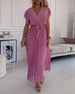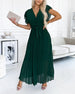 Icon1 Solid color ruffled sleeves V-neck elegant dress