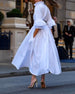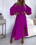 Elegant solid color V-neck slit long sleeve dress