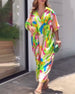 Elegant printed v-neck short sleeve dress