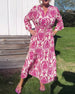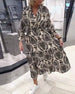 Long sleeve printed button loose dress