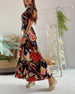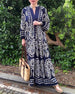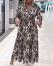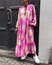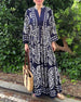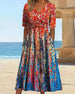 V-neck printed casual long dress